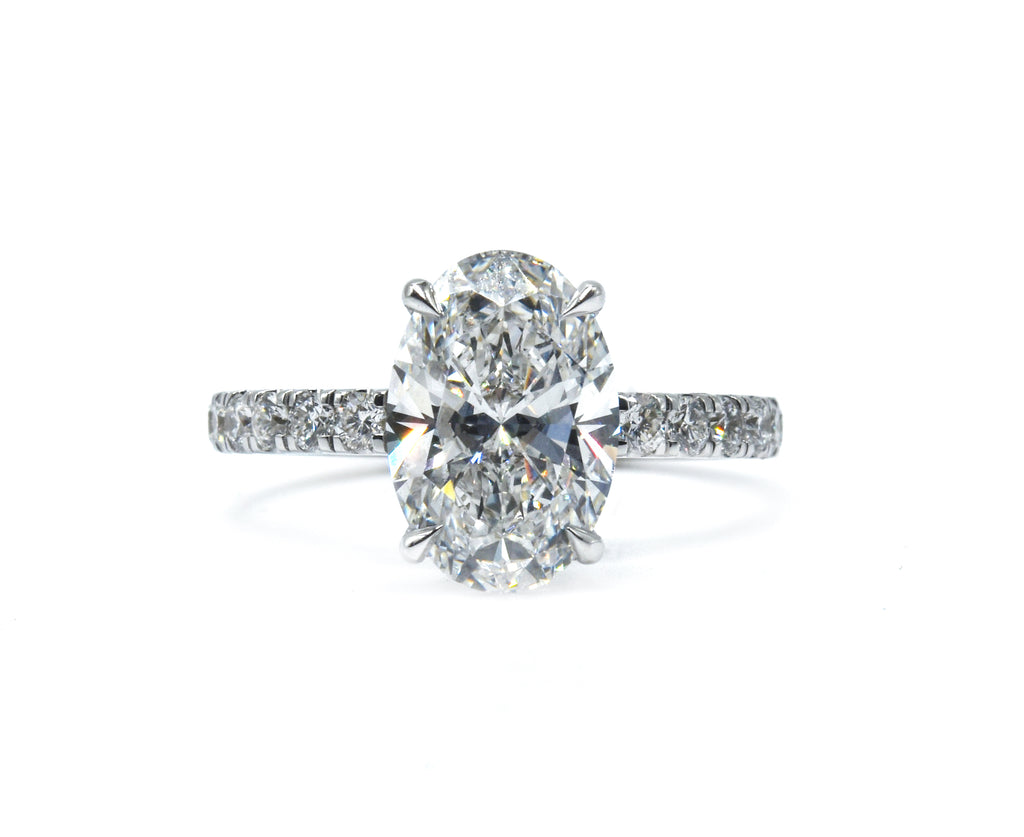 - Center Stone: Oval Brilliant cut Lab-Grown Diamond 3.09 carat, IGI certified
