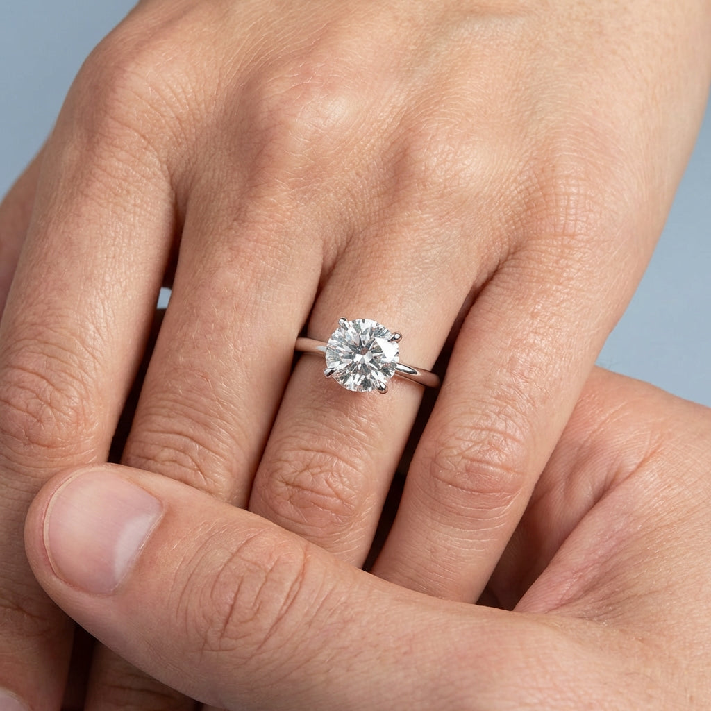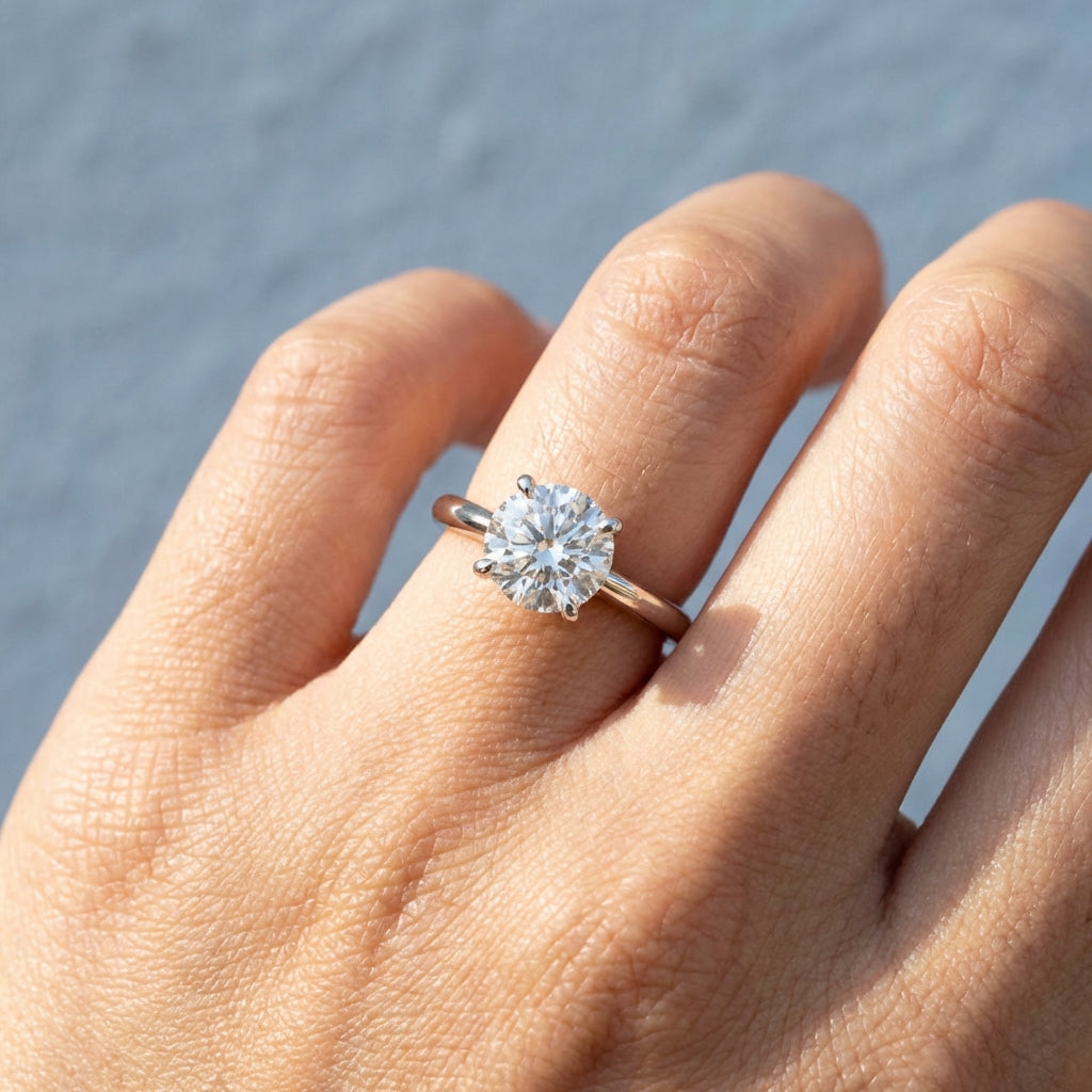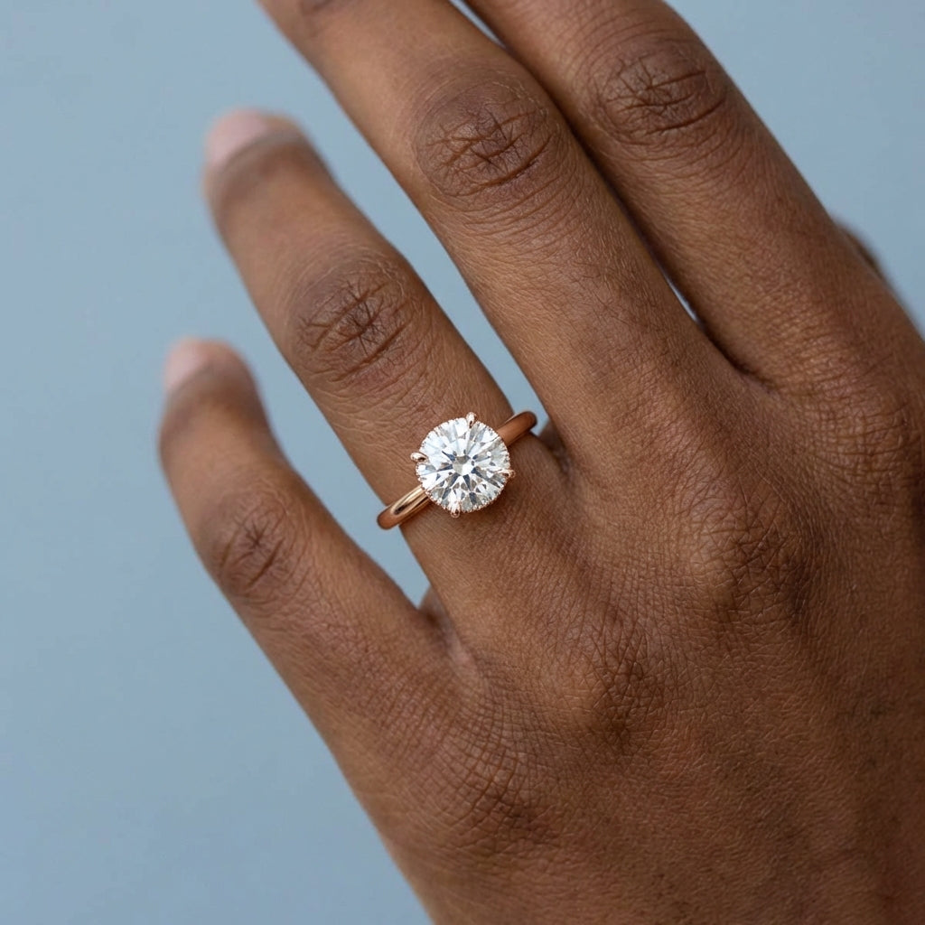 - Center Stone Security: The Round Brilliant diamond is secured by a refined four-prong "tiger claw" setting, a timeless choice that maximizes light return.