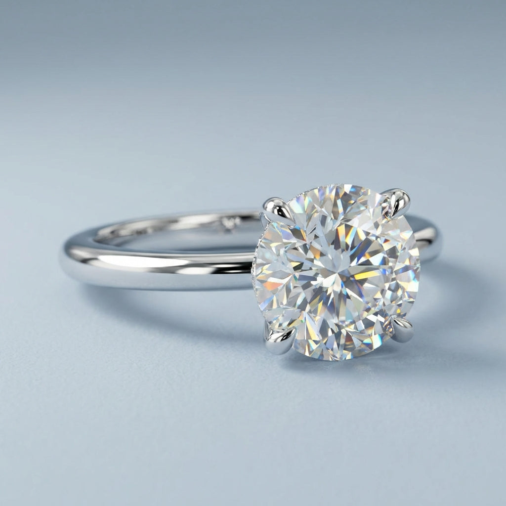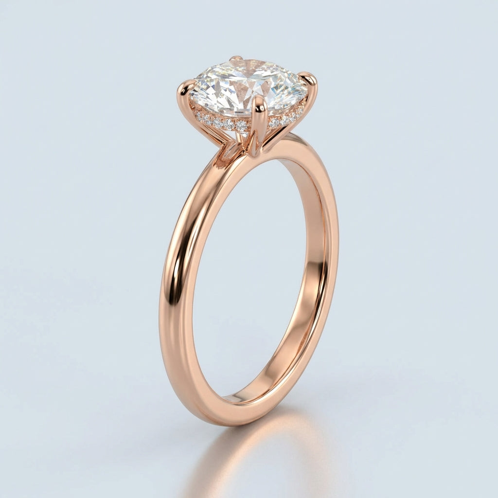 This handcrafted setting seamlessly blends the timeless elegance of a classic solitaire with the modern brilliance of a hidden halo. It is meticulously designed for a Round Brilliant cut center stone, offering maximum security and breathtaking sparkle.