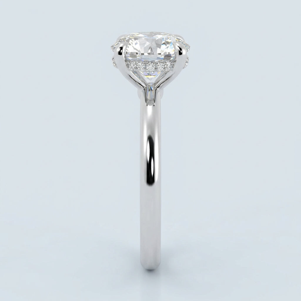 - Hidden Halo Accent: A delicate, petite basket halo is set beneath the main stone. This subtle addition features shimmering, colourless accent diamonds set in precise French Pavé.