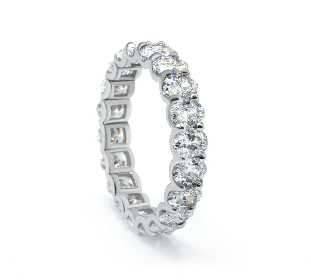Indulge in the captivating beauty of our lab grown oval eternity band. Each expertly cut oval diamond radiates exceptional fire and brilliance, encircling your finger in a seamless display of light. Crafted with responsibly created lab-grown diamonds and set in your choice of white or yellow gold, this band offers exceptional value and peace of mind. Perfect for celebrating life's milestones or as a cherished everyday piece.