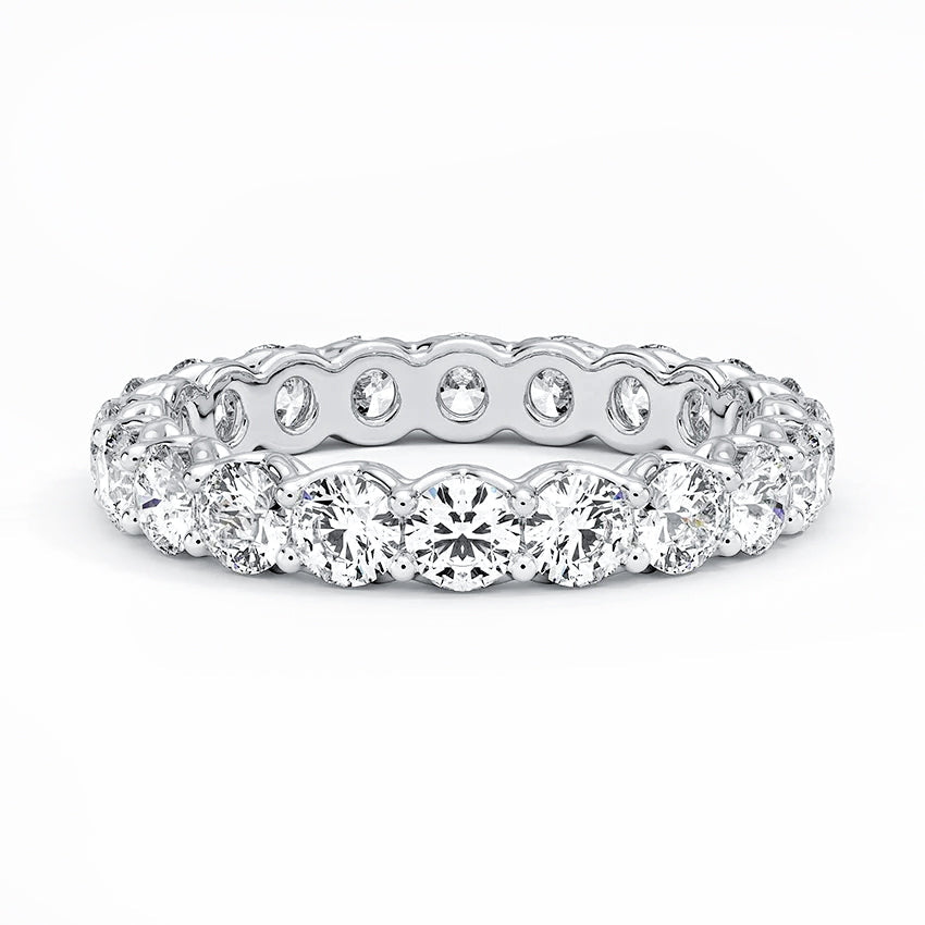 Embrace the timeless brilliance of our lab grown round cut eternity band. This exquisite ring features a continuous circle of dazzling, perfectly cut lab-created diamonds, renowned for their unparalleled sparkle. Set in your choice of white or yellow gold, it's a magnificent symbol of everlasting love and ethical luxury.