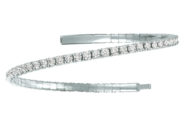 This elegant diamond tennis bangle bracelet is a stunning addition to any jewelry collection. The flexible design allows for a comfortable fit, while the sparkling diamonds add a touch of glamour. Crafted from high-quality materials, this bracelet is perfect for special occasions or everyday wear.