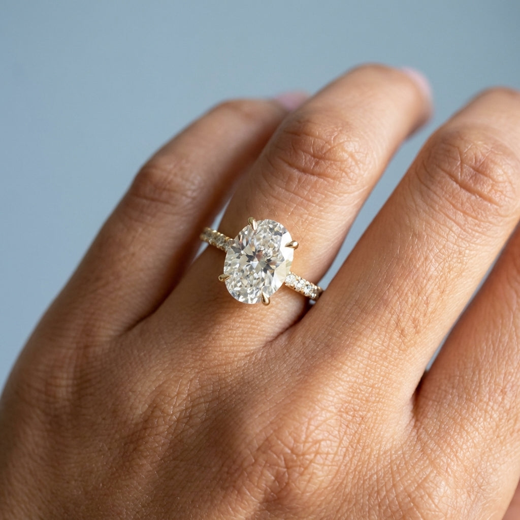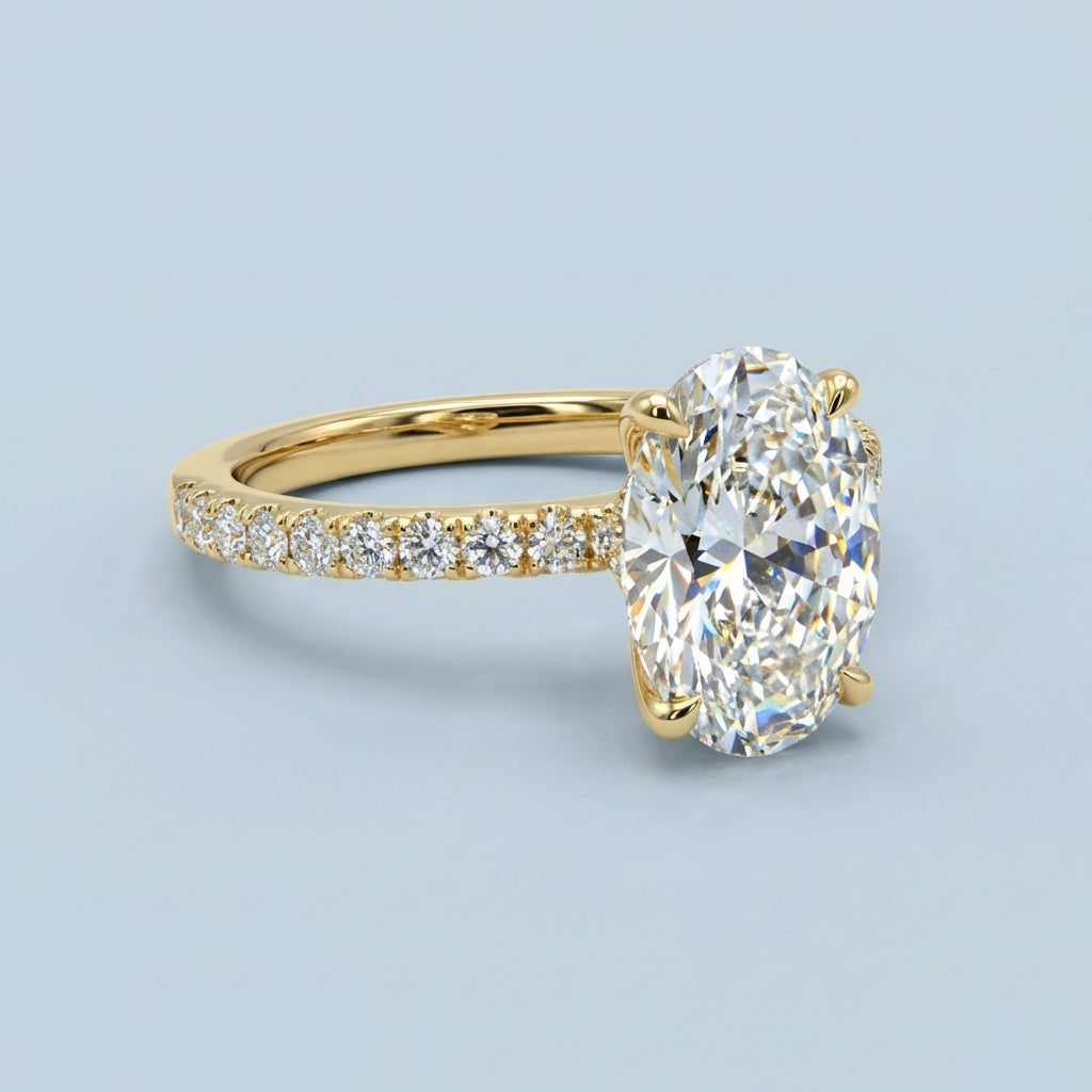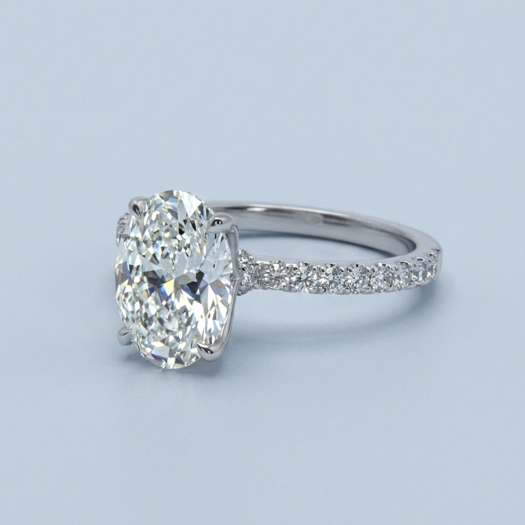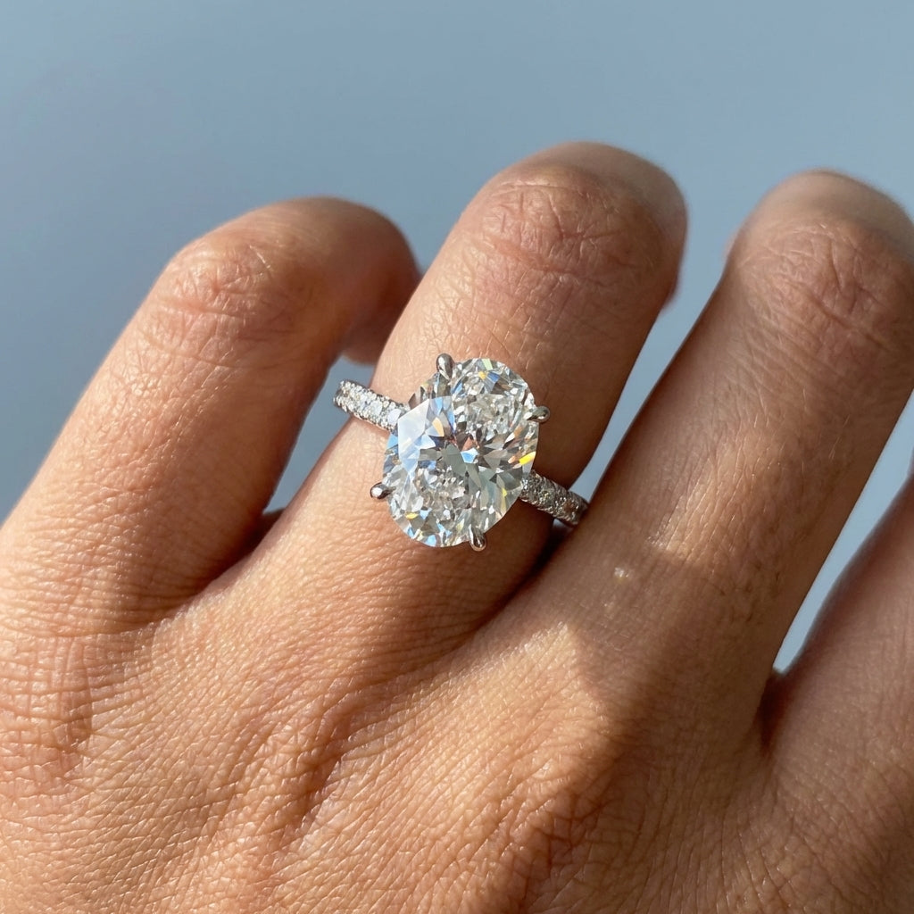 - Center Stone Style: An elegant oval-cut stone, renowned for its flattering elongated shape and exceptional sparkle.