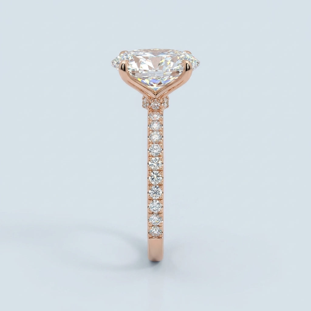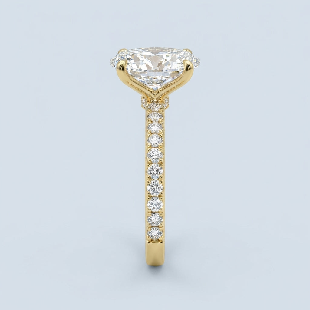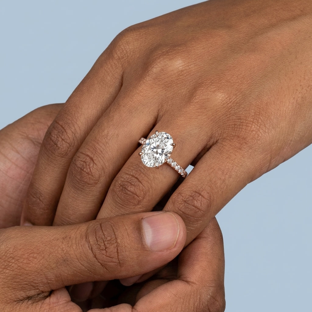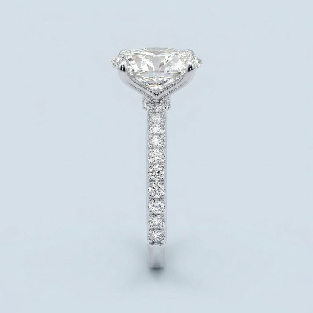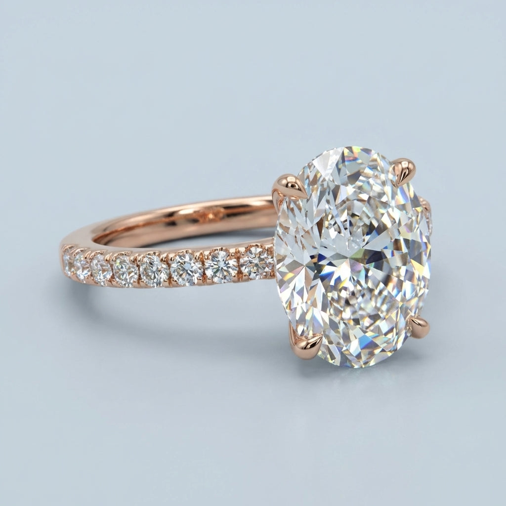 - Center Stone Style: An elegant oval-cut stone, renowned for its flattering elongated shape and exceptional sparkle.