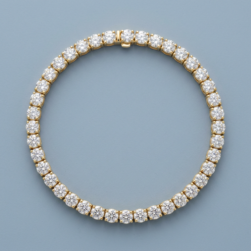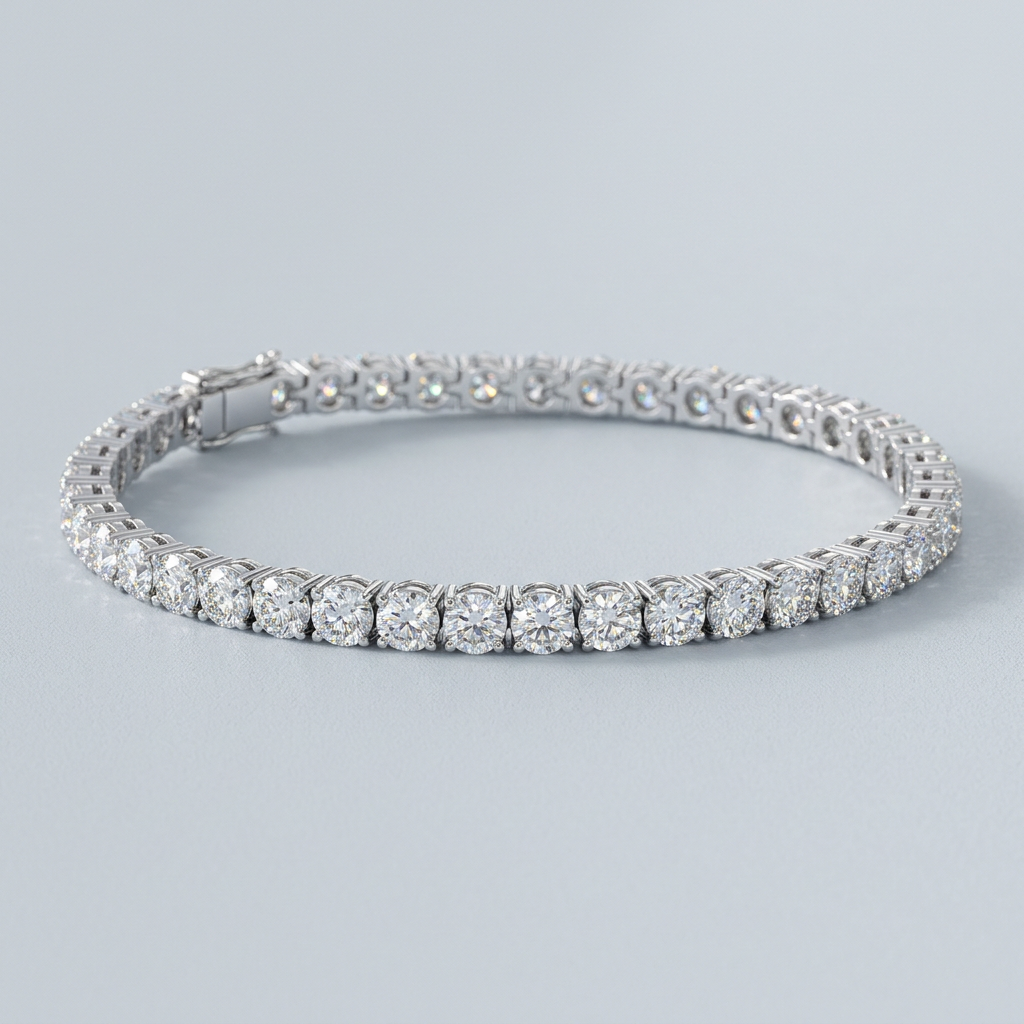 Exude timeless elegance with this stunning tennis bracelet, featuring an impressive 15.00 total carats of round brilliant-cut lab-grown diamonds. Each stone is meticulously prong-set in your choice of 14k white or yellow gold, creating a continuous stream of brilliance around the wrist. Designed for both security and style, the bracelet is finished with a double-locking clasp and measures a standard 7-inch length.