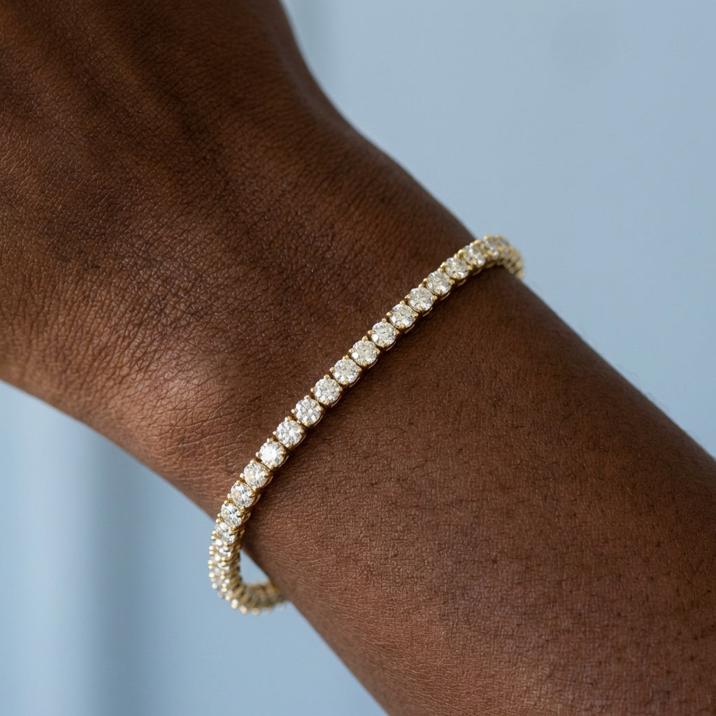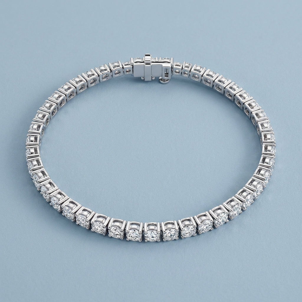The quintessential expression of luxury, this classic tennis bracelet features a continuous line of stunning round brilliant lab grown diamonds, totaling 4.00 carats (ctw).