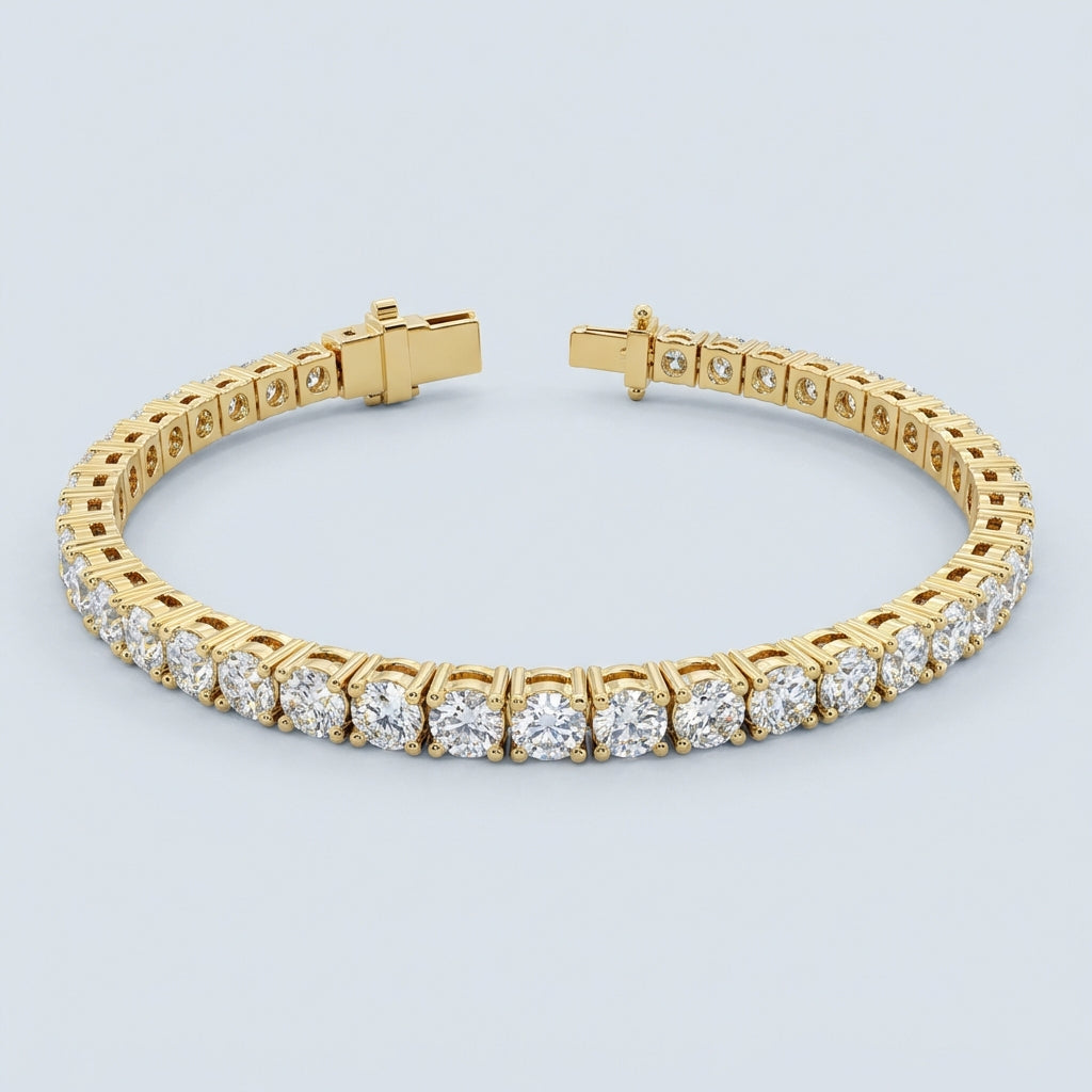 Each diamond is meticulously precision prong-set in solid 14k gold, ensuring maximum brilliance and a secure fit. The bracelet is offered in your choice of White or Yellow gold and secures firmly with a robust double-locking clasp. This piece measures a standard 7-inch length.