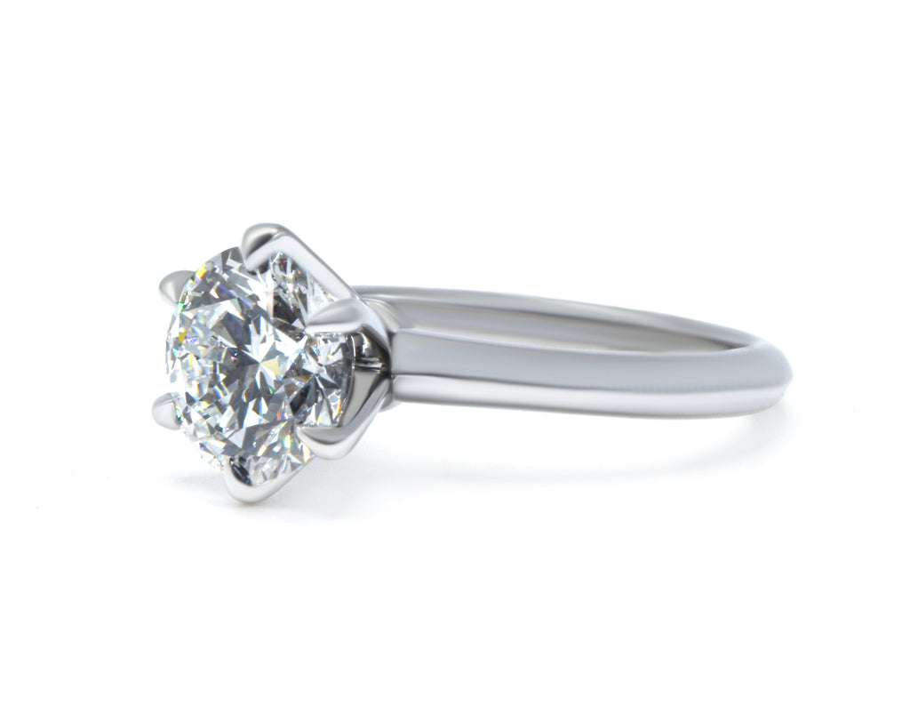 Perfect, simple, classic, and completely modern and contemporary, a new take on the classic six-prong. Clean lines, pure comfort on the finger.